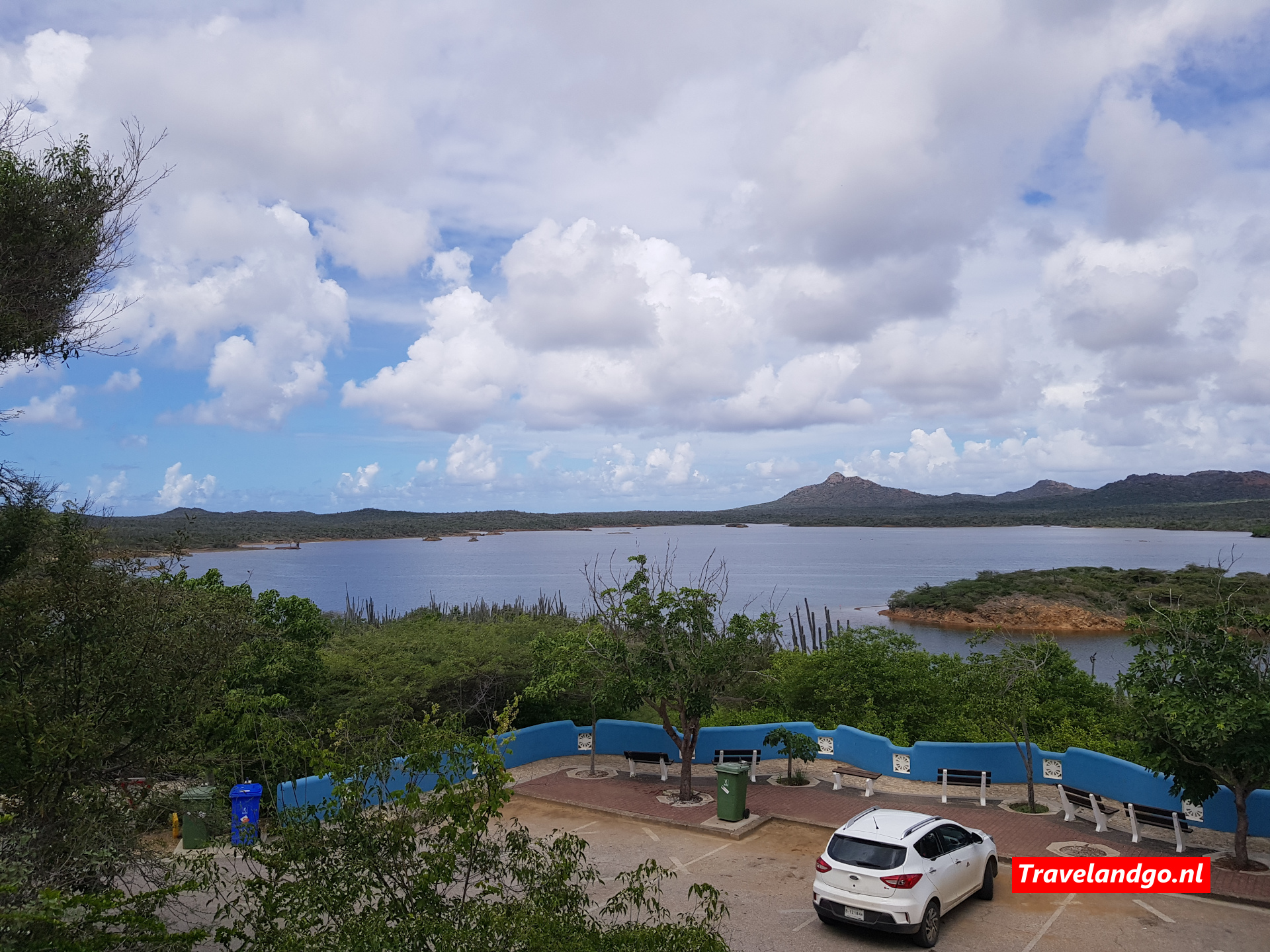 Als je met de bocht mee gaat, ga je landinwaart de Kaminda Goto in. De weg komt uit op een parkeerplaats. Het is zeker een aanrader om daar even te stoppen en even naar boven te lopen voor een geweldig uitzicht op het Gotomeer. De afstand was helaas te groot om goede foto’s te maken met een flamingo erop.